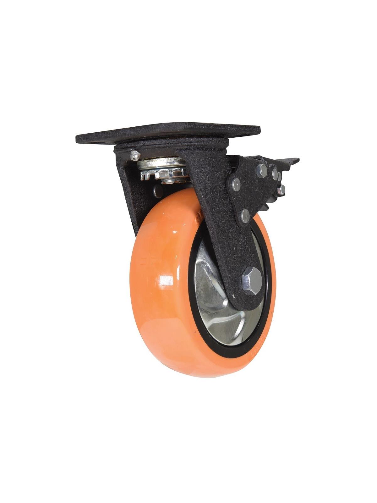 The perfect asset for an assortment of commercial and non-commercial settings. Swivel design allows the user to maneuver and change directions instantaneously. Wheel core is made of polypropylene. 95 /-5 Shore A. FOB Shipping Point.