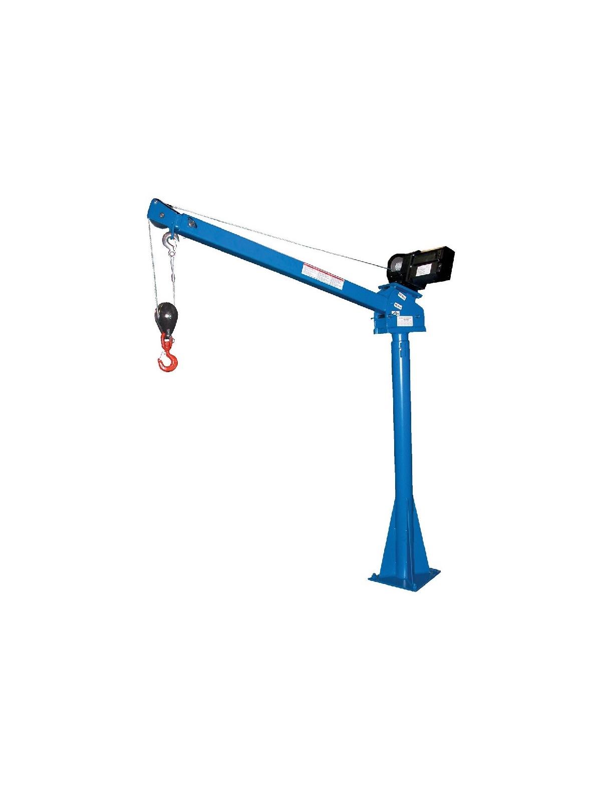 B) The economical answer to your material handling problems. Offers light duty, intermittent use. Up to 1,500 lbs. uniform capacity at 27-13/16" boom extension. 360° locking manual rotation, 25' of 7/32" cable with hook on AC units, 46' of 3/16" cable on DC units.