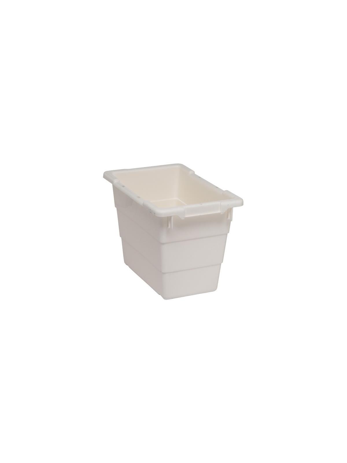 Ideal for production, assembly or order picking. Injection molded from high impact polyethylene -- won't crack, rust or corrode. Easy to clean and maintain. Built in handles and bottom grooves make handling easy. Holds up to 100 lb. loads. 8-1/4" drill hole pattern on bottom if drainage is required. Available in Gray, Blue or White. FOB Shipping Point.