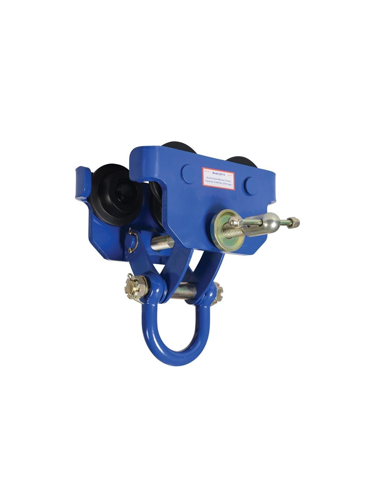 Designed to easily adjust to the width of virtually any S, H, W, and M type I-beam. Width is adjusted with manual screw mechanism. Includes locking ring to prevent trolley width from changing accidentally. Manual screw mechanism may also be tightened to prevent trolley from moving (similar to a Beam Clamp). Each trolley includes four rollers with sealed bearings for long life. A lifting eye is located at the bottom of the trolley for attaching a hoist (sold separately). Steel construction and painted finish. FOB Shipping Point.