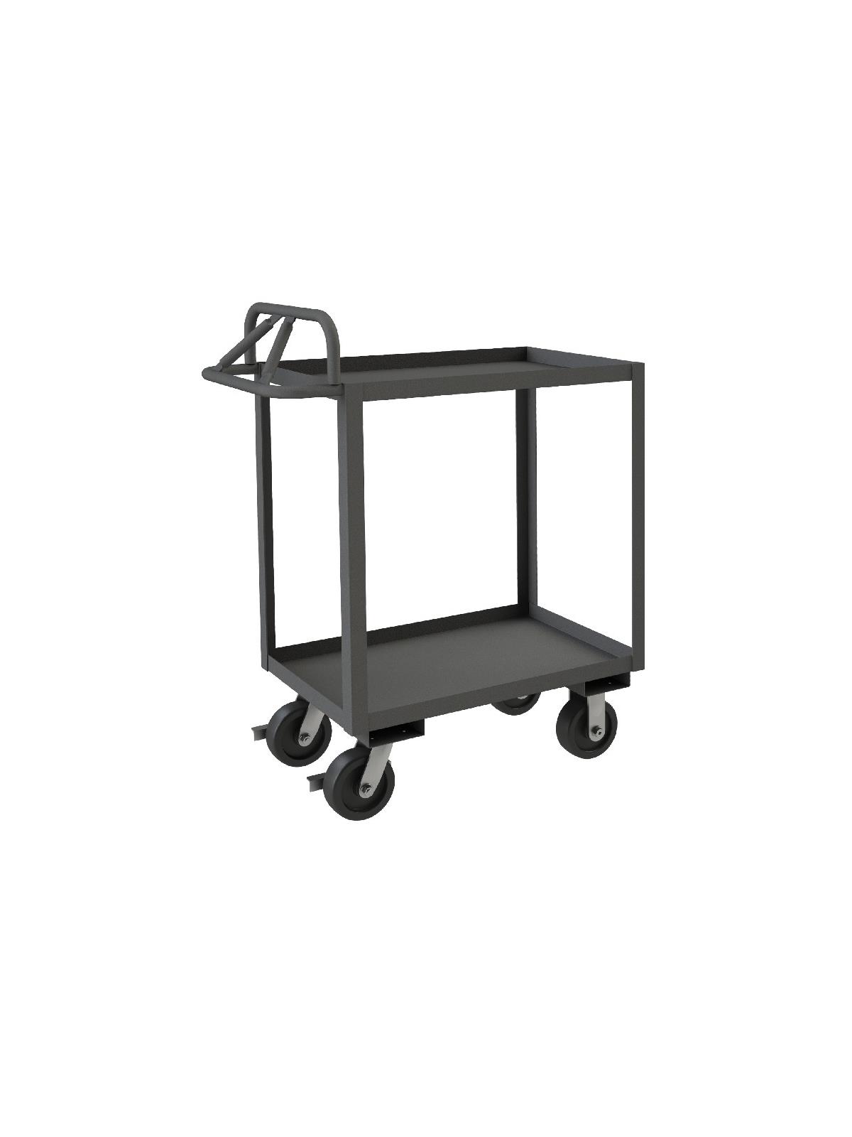 Constructed with 1-1/2" x 1/8" angle iron uprights for added strength. Heavy duty 14 gauge steel shelves. Sturdy, tubular, ergonomic handle has 3 positions ensuring maximum comfort. Standard units have 1-1/2" lips. ALD units have all lips down, TLD units have top lips down. Durable, gray, textured powder coat finish. FOB Shipping Point.