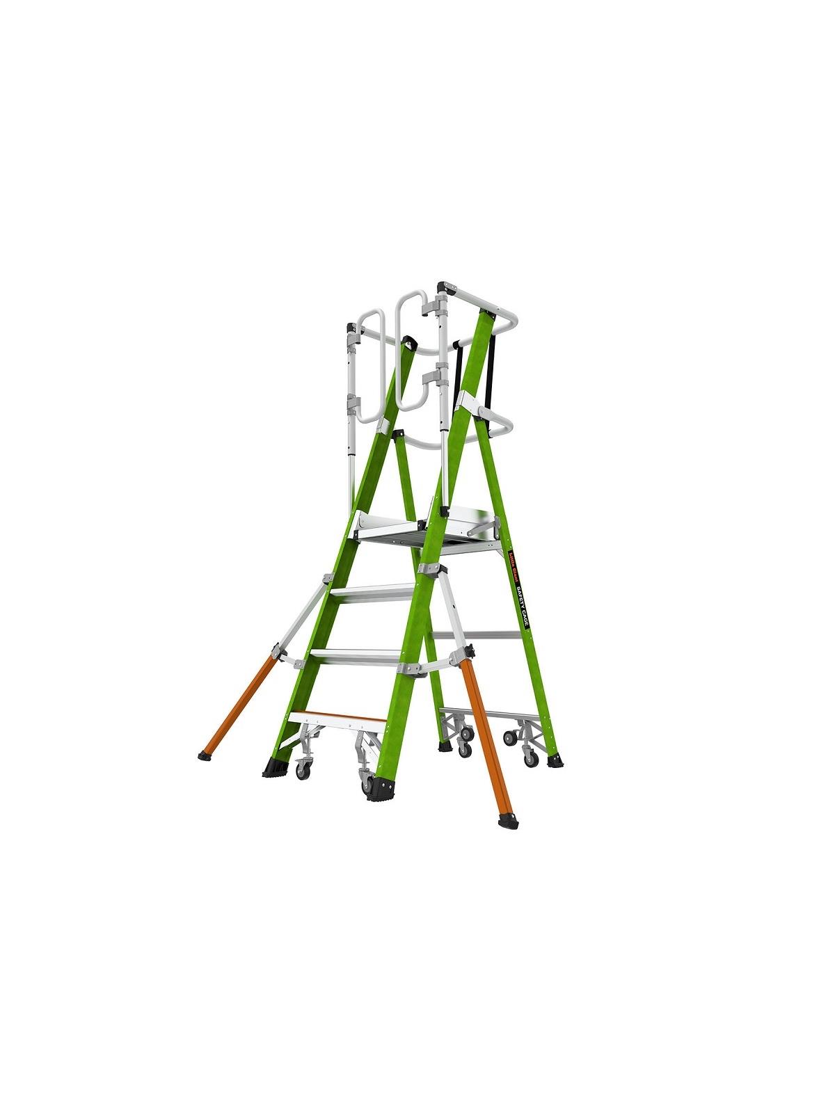 • Fiberglass platform ladder with wheels.