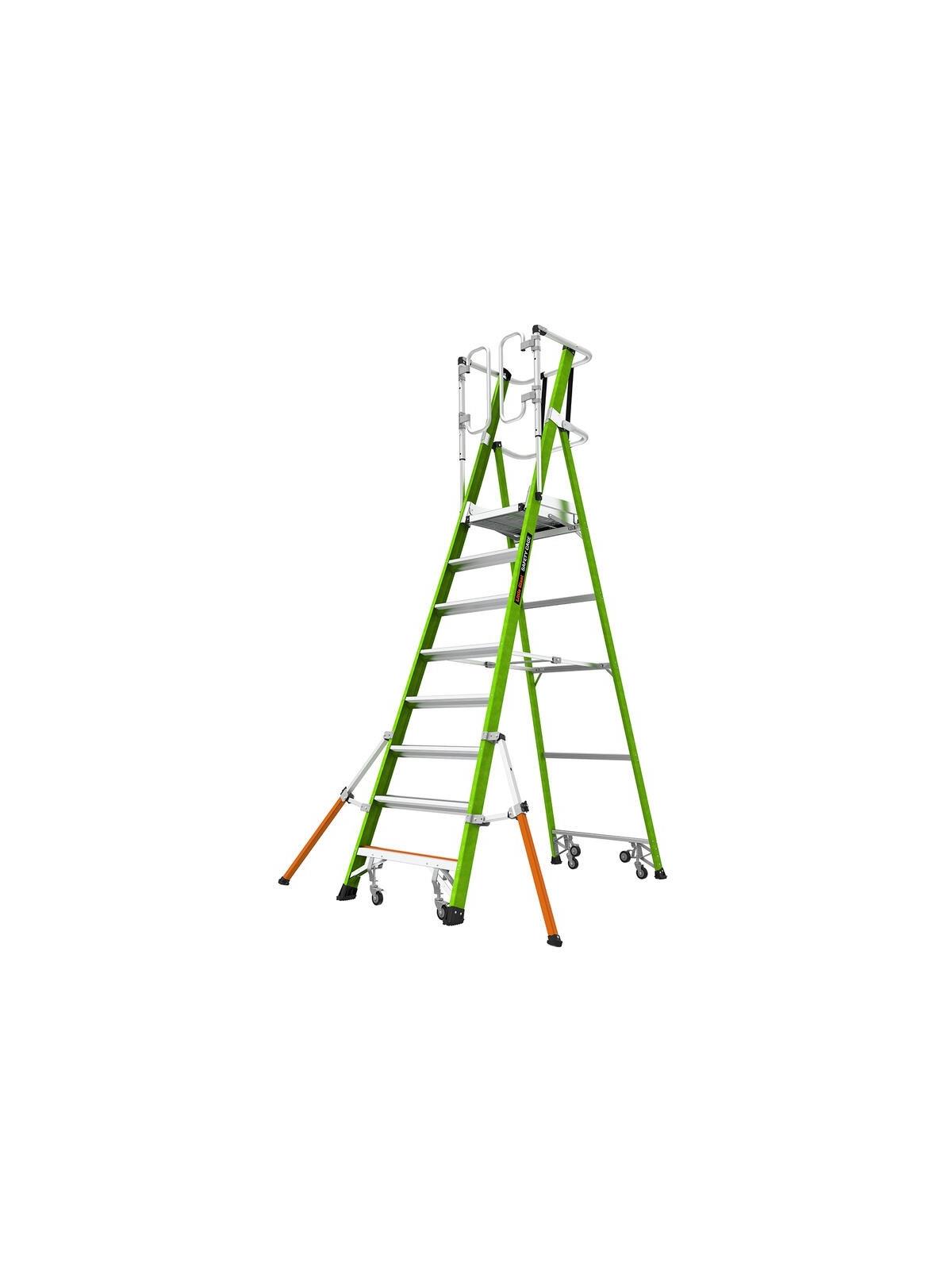 • Fiberglass platform ladder with wheels.