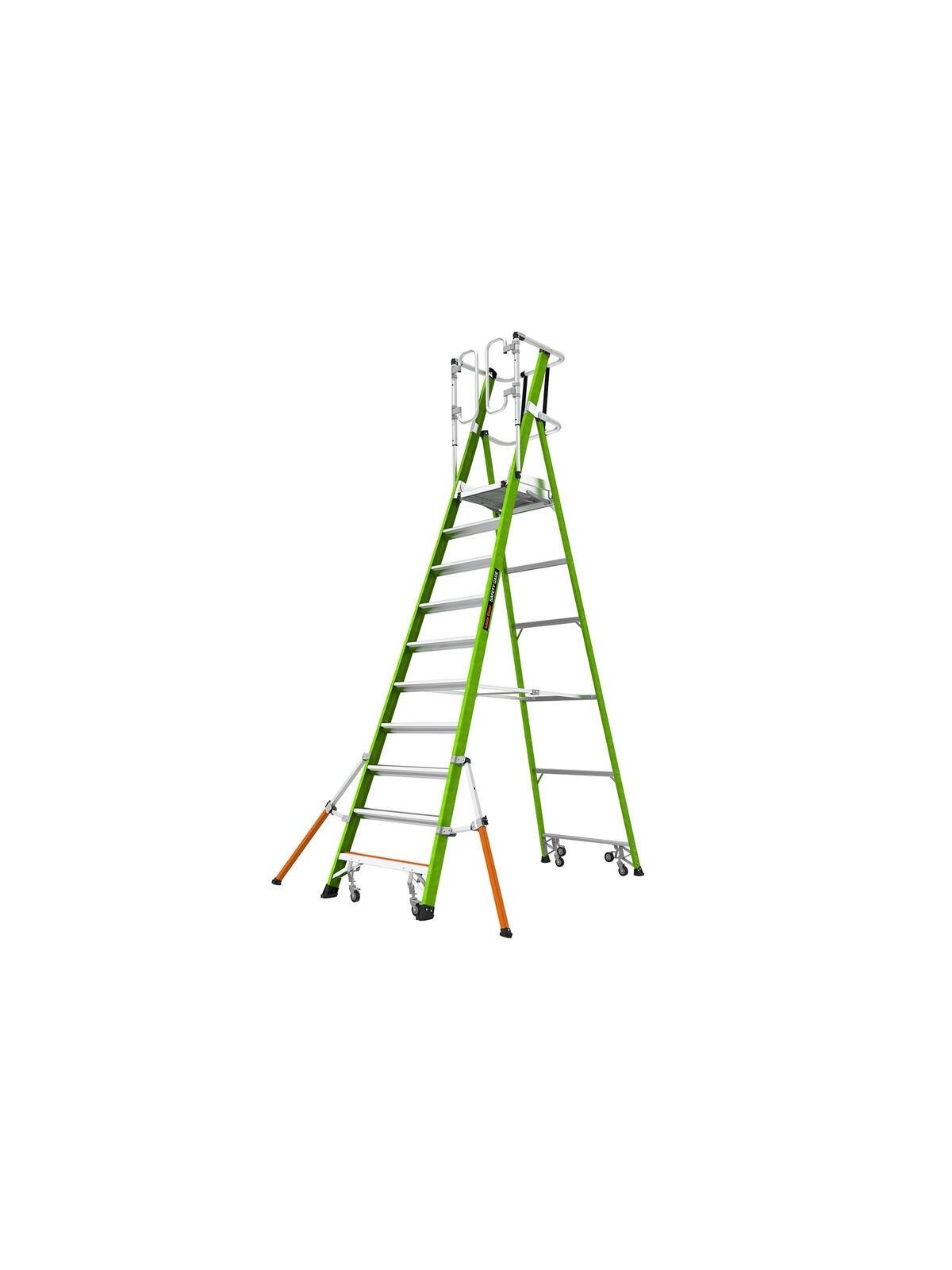 • Fiberglass platform ladder with wheels.