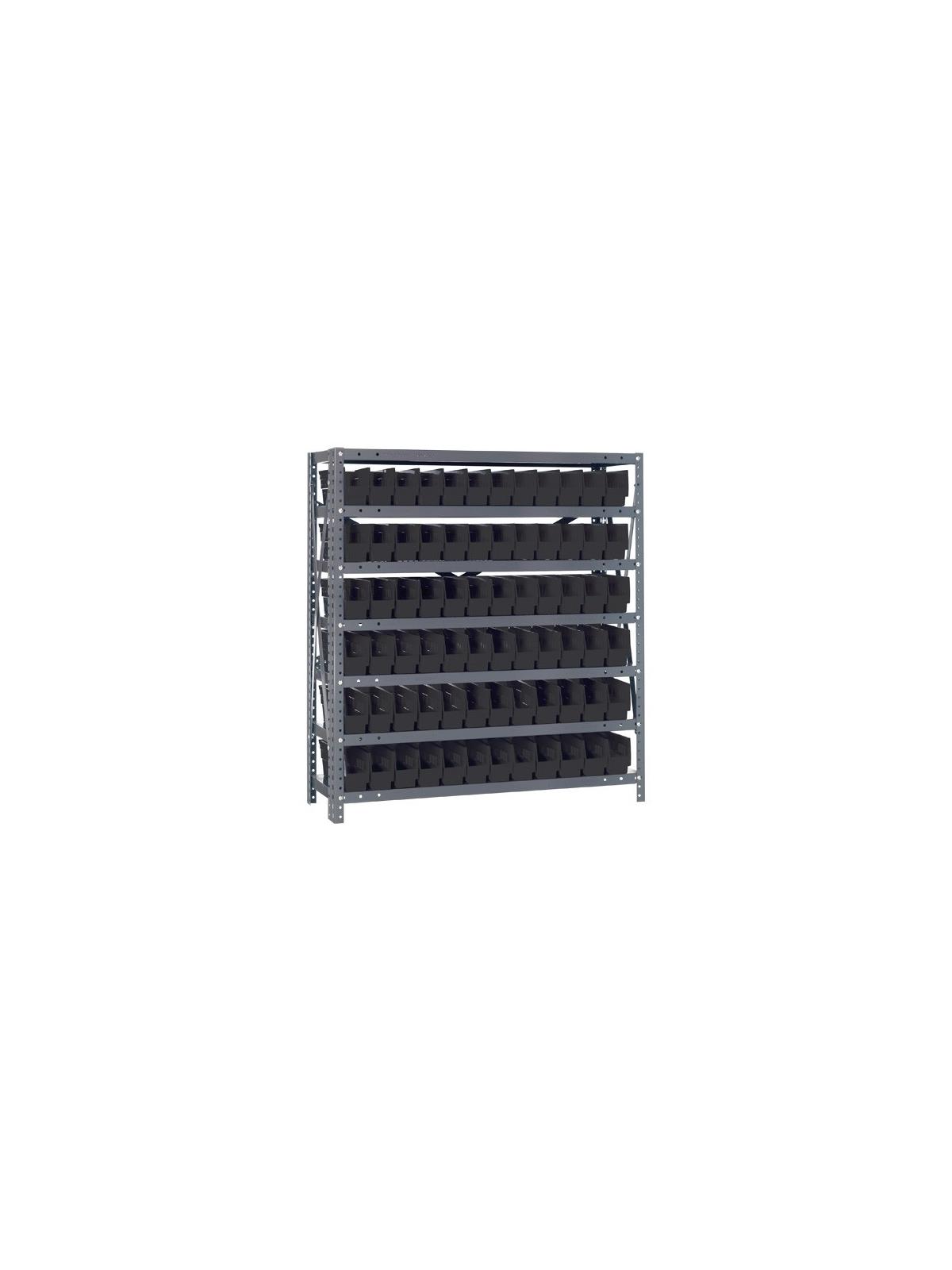 Rugged 350 lb. capacity per shelf, standard shelving unit will keep parts organized and readily accessible. Gray enamel finish will not rust or corrode. 12-HQSB100, 8-HQSB101, 5-HQSB102, 4-HQSB107, 3-HQSB109 fit across a standard 36"W x 12"D shelf. 8-HQSB103, 5-HQSB104, 4-HQSB108, 3-HQSB110 fit across a 36"W x 18"D shelf. Bins are available in Blue, Yellow, Red, Green, Ivory or Black. FOB Shipping Point.