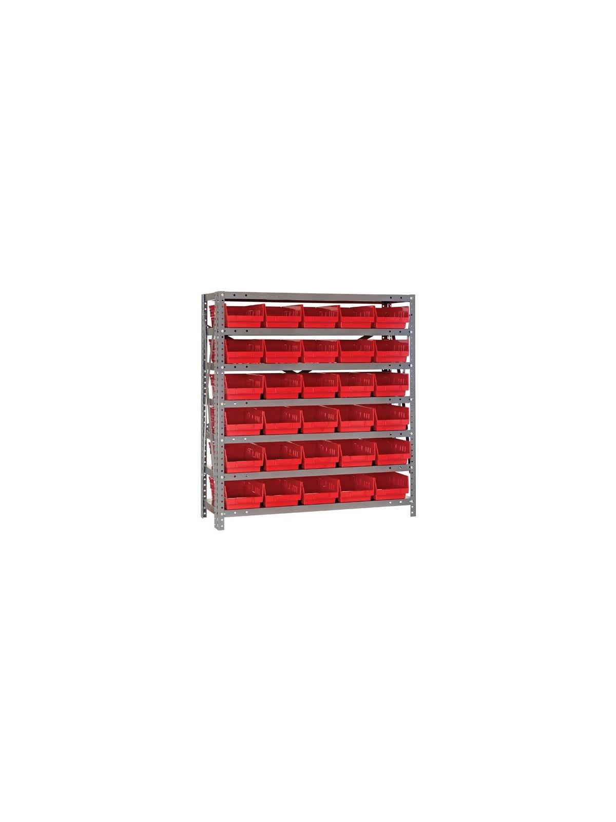 • Economical bin storage system includes durable Plastic Shelf Bins and a 36"W standard shelving.