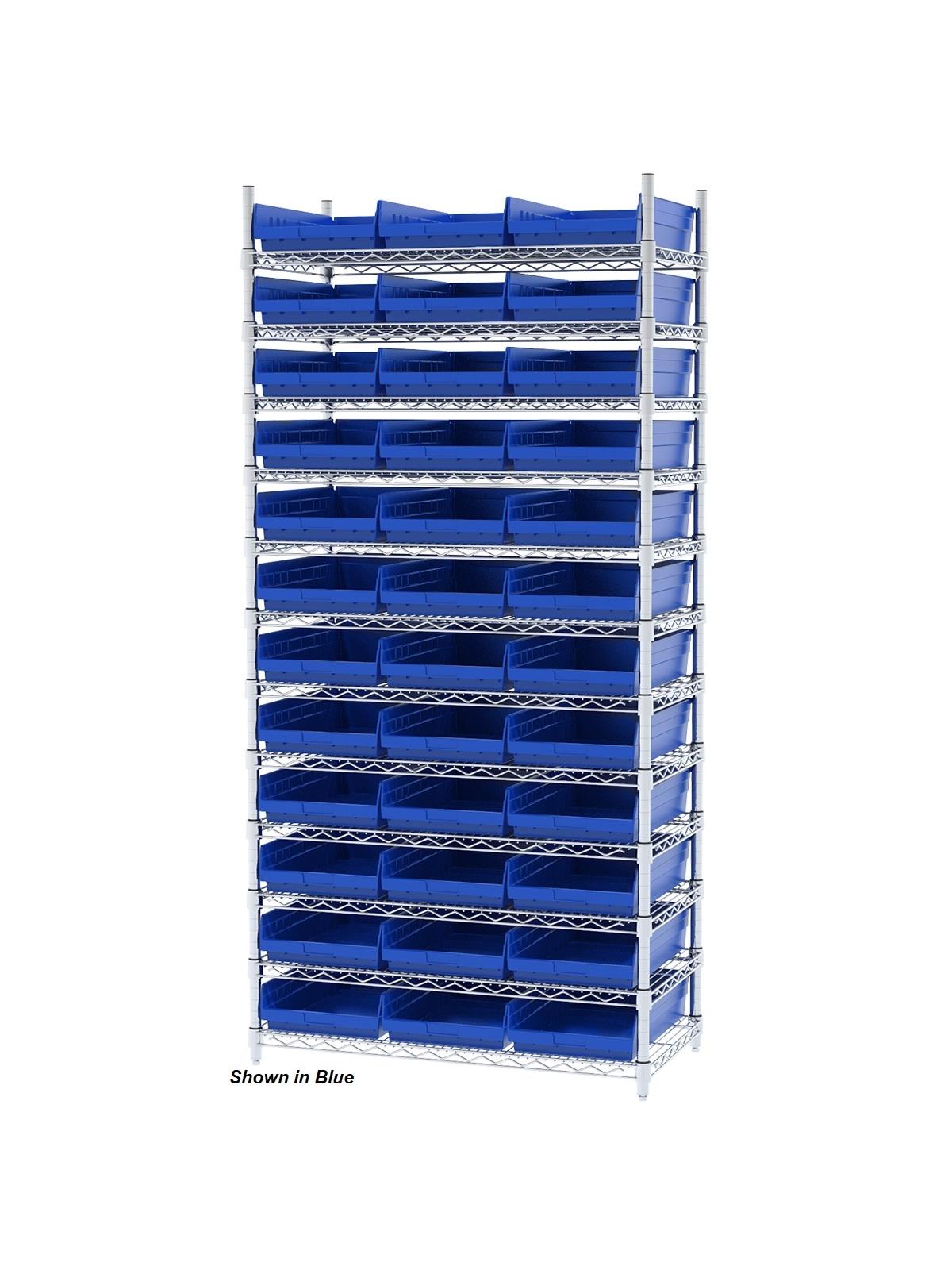 Shelf Bin Wire Systems can be configured for use with 36, 48, 60 or 96 bins providing a versatile system for storage and material handling. Durable and strong polypropylene shelf bins outlast corrugated bins. Bins available in Blue, Red, Yellow, or Semi-Clear. FOB Shipping Point.