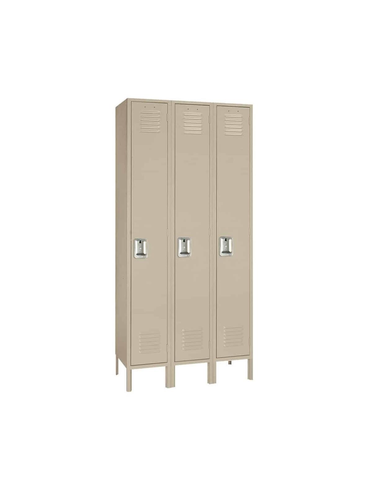 Single Tier Lockers - Features steel recessed handle and hooks for hanging clothing and other items. Single tier lockers also include a separate shelf.