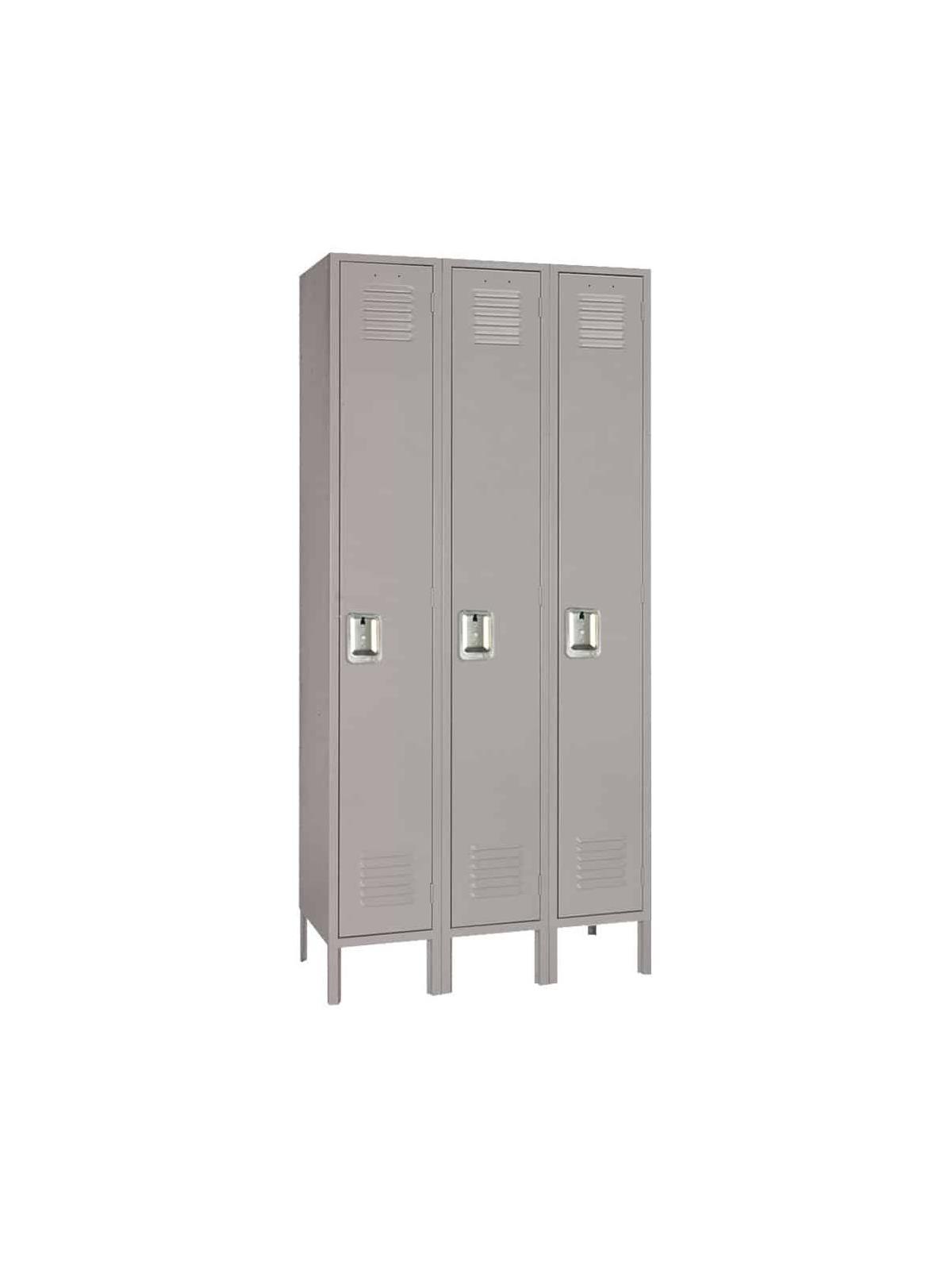 Single Tier Lockers - Features steel recessed handle and hooks for hanging clothing and other items. Single tier lockers also include a separate shelf.