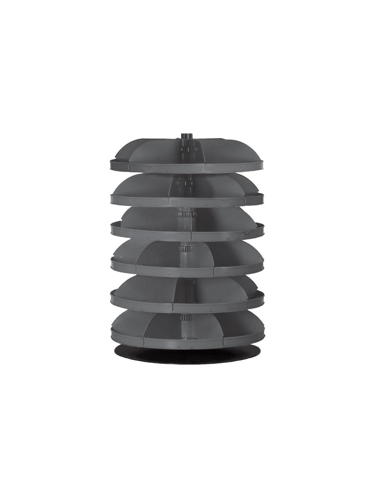 When space is at a premium, Rotabin® is the answer. Revolving shelves turn easily, independently...even when fully loaded. Made of heavy gauge steel for hard daily use. Available in Gray powder coat. FOB Shipping Point.