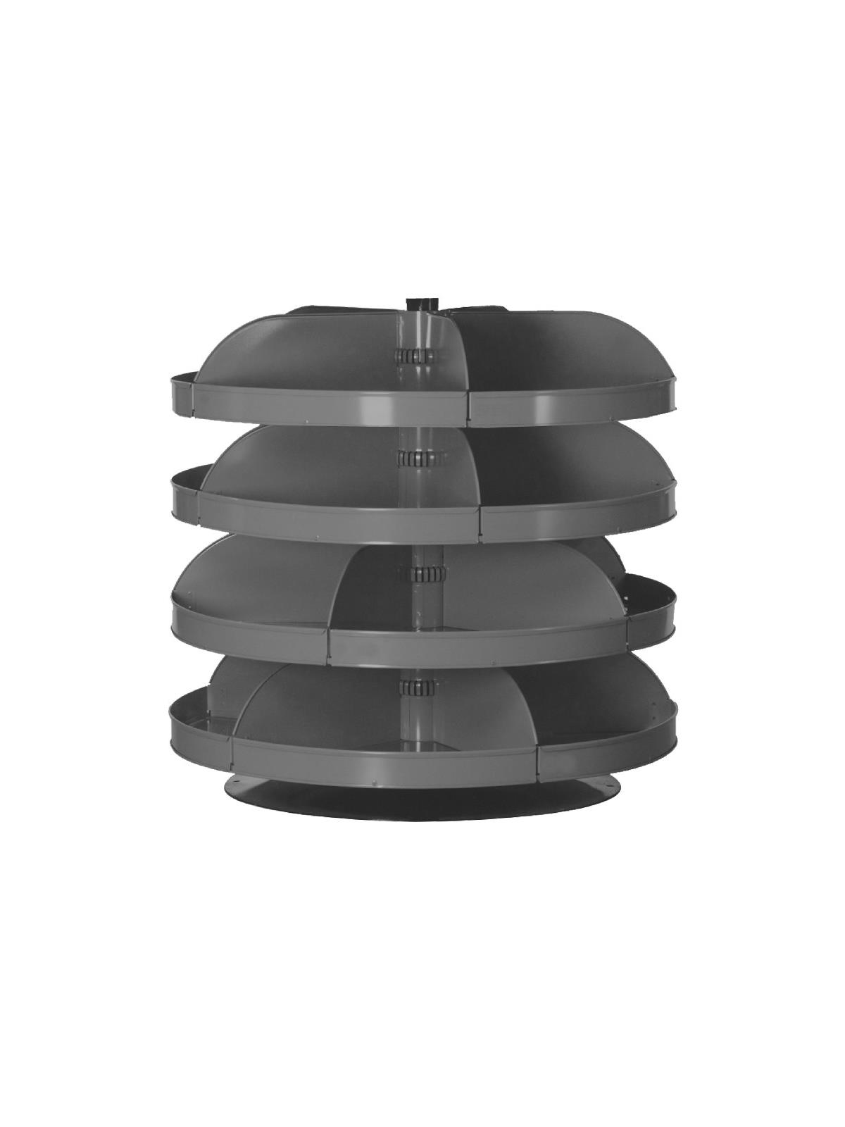When space is at a premium, Rotabin® is the answer. Revolving shelves turn easily, independently...even when fully loaded. Made of heavy gauge steel for hard daily use. Available in Gray powder coat. FOB Shipping Point.