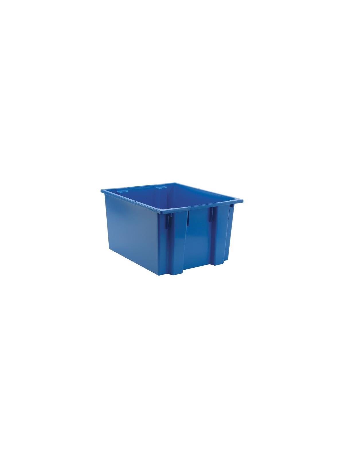 High density polypropylene, injection molded for uniform wall thickness and added strength. Lids snap tightly and securely for a safe fit. Quick 180° turn offers space-saving stacking and nesting. Stacks 6 high. Fits 48" x 40" pallets (6 SNT190, 4 SNT230 per level). Usable in temperatures from -­10° to 250°F. Available in Gray, Blue, Red or Clear. Optional clear, see-thru Stack and Nest Label Holder (HSNH010) and optional Dolly (HDLY-3018) available. FOB Shipping Point.