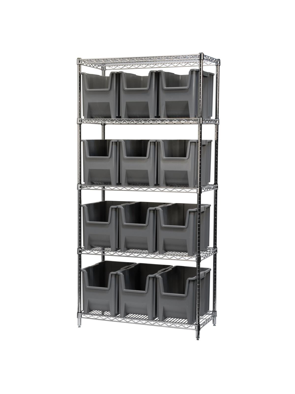Available with shelves and come with 8, 9 or 12 bins. Bins feature a wide hopper front for easy access. Bins available in Blue, Red, or Gray. FOB Shipping Point.