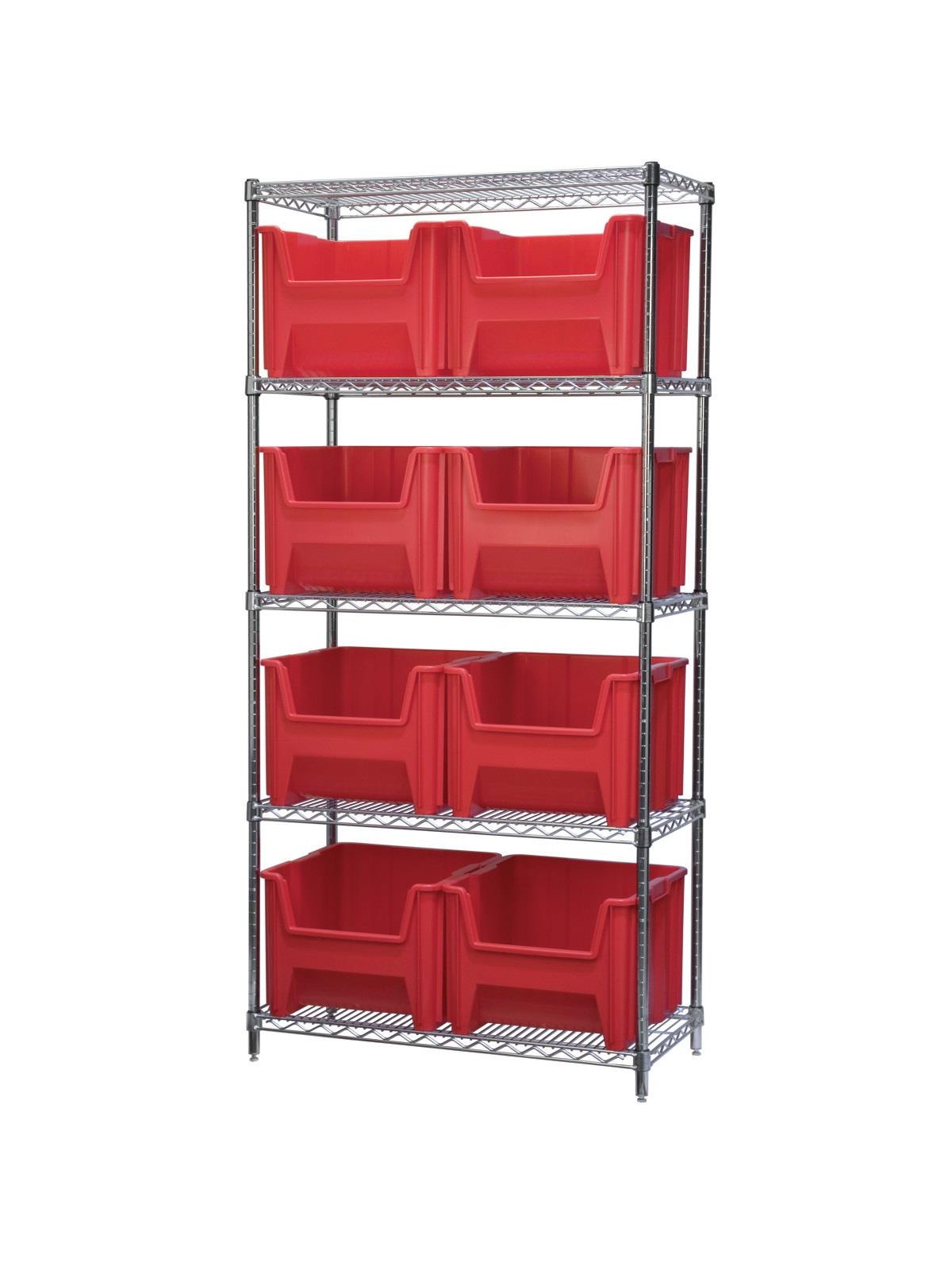 Available with shelves and come with 8, 9 or 12 bins. Bins feature a wide hopper front for easy access. Bins available in Blue, Red, or Gray. FOB Shipping Point.