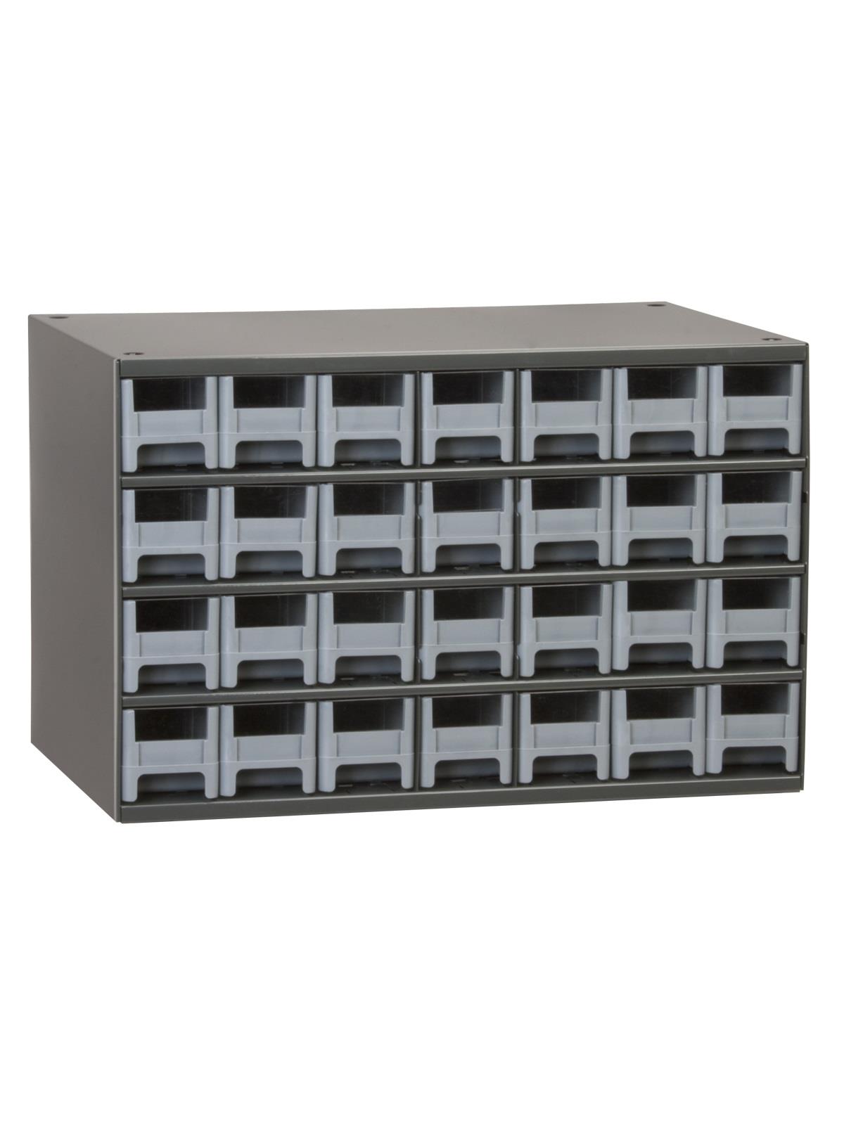 Drawers are removable and are rust, corrosion and dent proof. No sharp edges to damage parts. Unique rear stop tab on each drawer prevents spills. Includes one drawer color per cabinet - Gray in color. FOB Shipping Point.