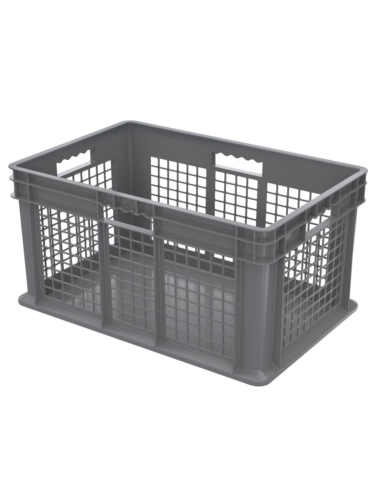 These straight wall containers have smooth inner walls that make cleaning easy and sanitary. The mesh sides allow excellent hot or cold air ventilation. Manufactured from injection-molded high-density polyethylene. Available in 4 sizes and 3 styles. Gray in color. FOB Shipping Point.