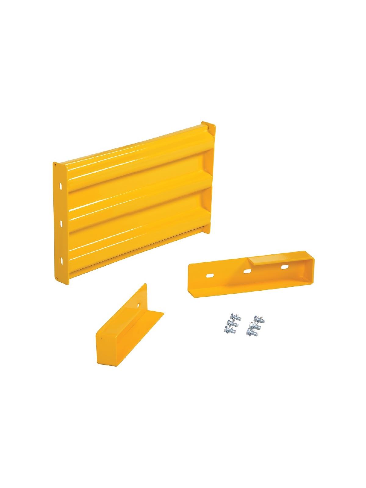 Create a modular system to protect equipment, inventory, and individuals from damage or injury. Corrugated rails are constructed from 1/8" thick material, made for high impact resistance indoors and out. Posts are constructed of 1/4" thick material with mounting holes on all four sides for use as corner or center posts. Posts measure 4" x 4" with a 10" square steel base plate that is 5/8" thick. Bolts and washers are provided with individual rail sections. Provide easy accessibility with our drop-in style rails. Slide rail sections into post saddles for simple assembly. Each drop-in style rail section includes two brackets. Bolt-on style rails are designed for permanent installation. Optional gate available for easy access in and out of work area. Galvanized material available. FOB Shipping Point.