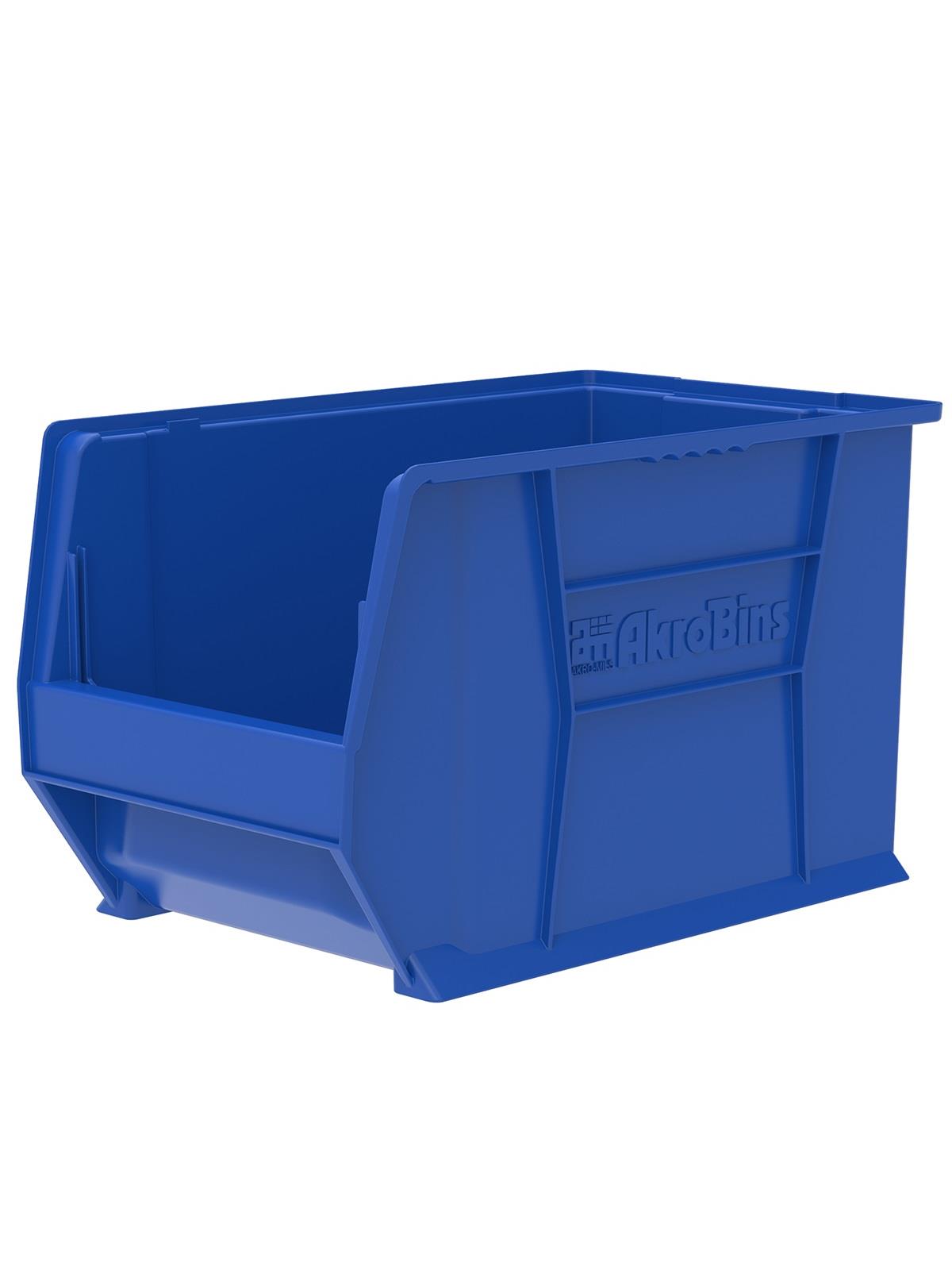 • Heavy-duty bins securely stack atop each other -- or sit on shelving.