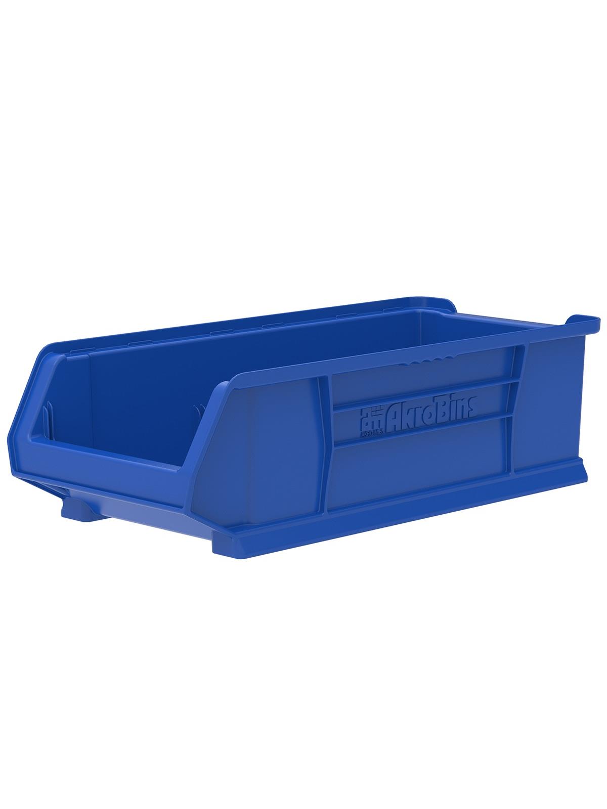 • Heavy-duty bins securely stack atop each other -- or sit on shelving.