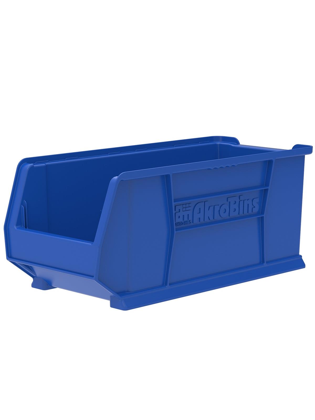 • Heavy-duty bins securely stack atop each other -- or sit on shelving.