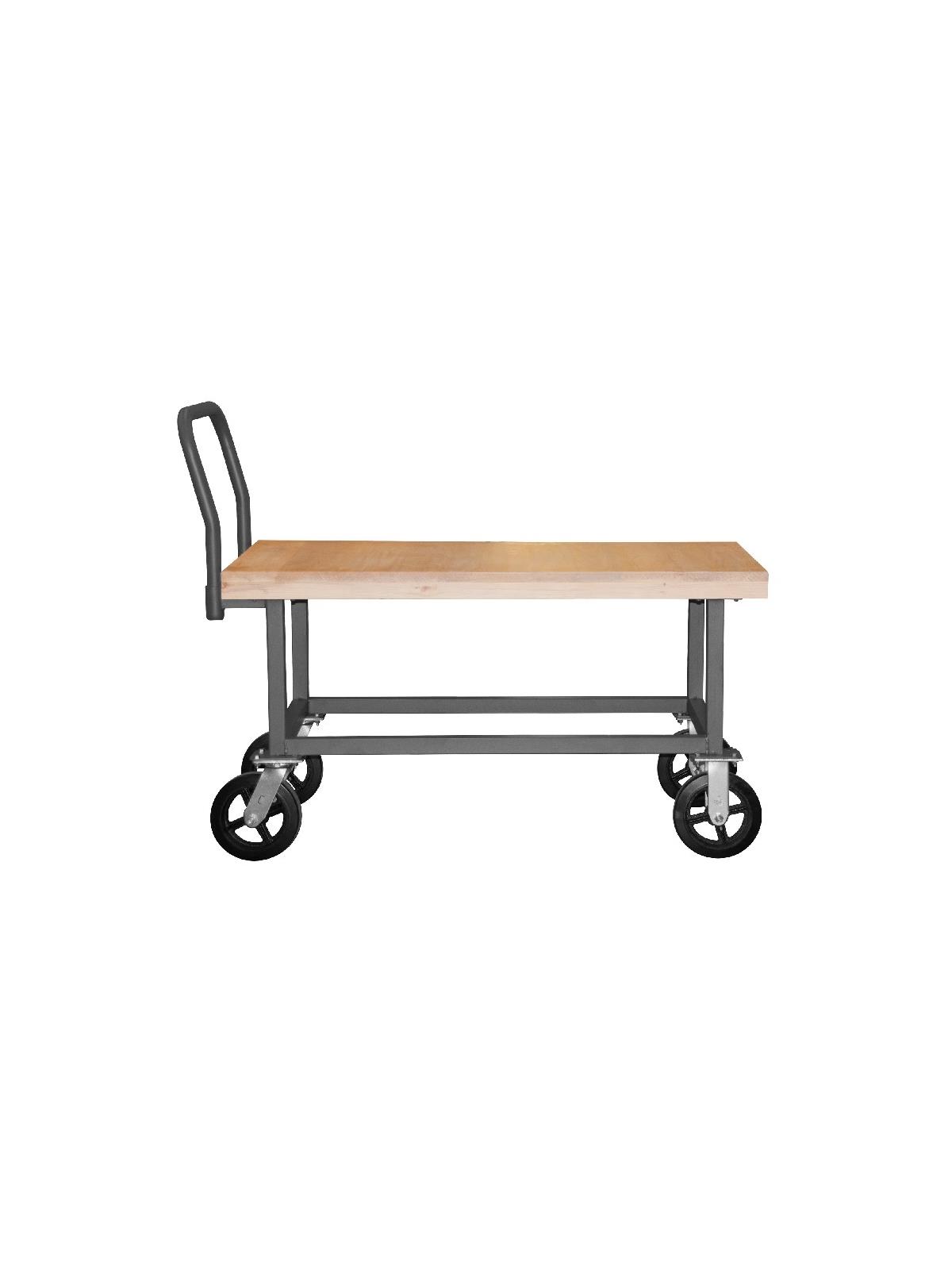 All welded heavy duty steel trucks feature heat treated hardwood surfaces with a removable, tubular offset handle that allows for easy mobility. 8 x 2" mold-on rubber casters (2 swivel and 2 rigid). Ships fully assembled and ready to use. Durable, textured gray powder coat finish. FOB Shipping Point.