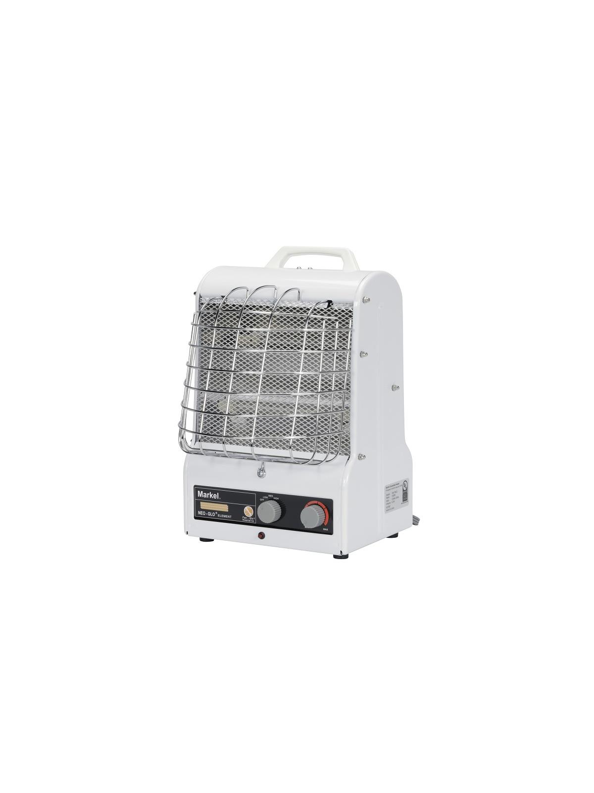 Includes control thermostat. 3 heat settings -- 600 watts radiant, 900 watts fan forced, 1500 watts radiant and fan forced. Temperature control thermostat. Manual reset type limit control. 6"L. 3 conductor cord. 120 volts, 5120 BTU's. ETL C/US listed. FOB Shipping Point.